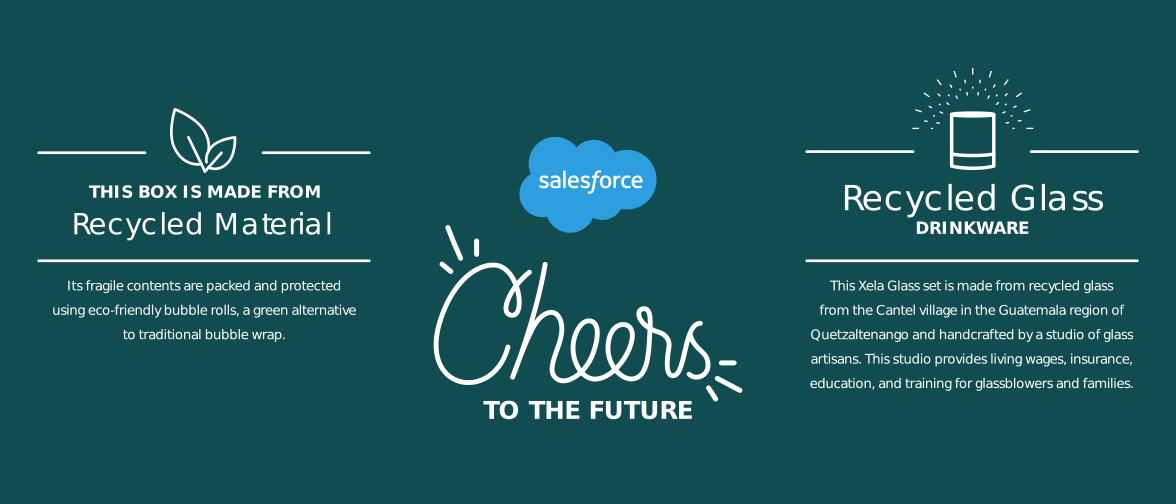 Ahead of Spring 2022, our Account-Based Marketing partners requested a values-based direct mail kit to communicate Salesforce’s commitment to sustainability as TeamEarth, a Salesforce-led movement of businesses who committed to creating a more equitable, sustainable world, began to roll out. We sent a kit of sustainable goods to the other companies leading the charge and included all the print pieces below. I led creative strategy and copy writing while Ben Warner led the charge on design execution.